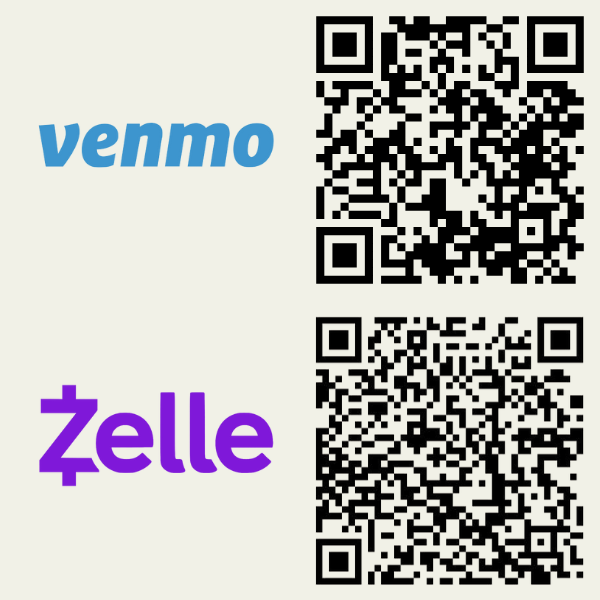 or, if you'd prefer to support us monetarily with our next steps together, feel free to send us something via venmo or zelle using the qr codes below: